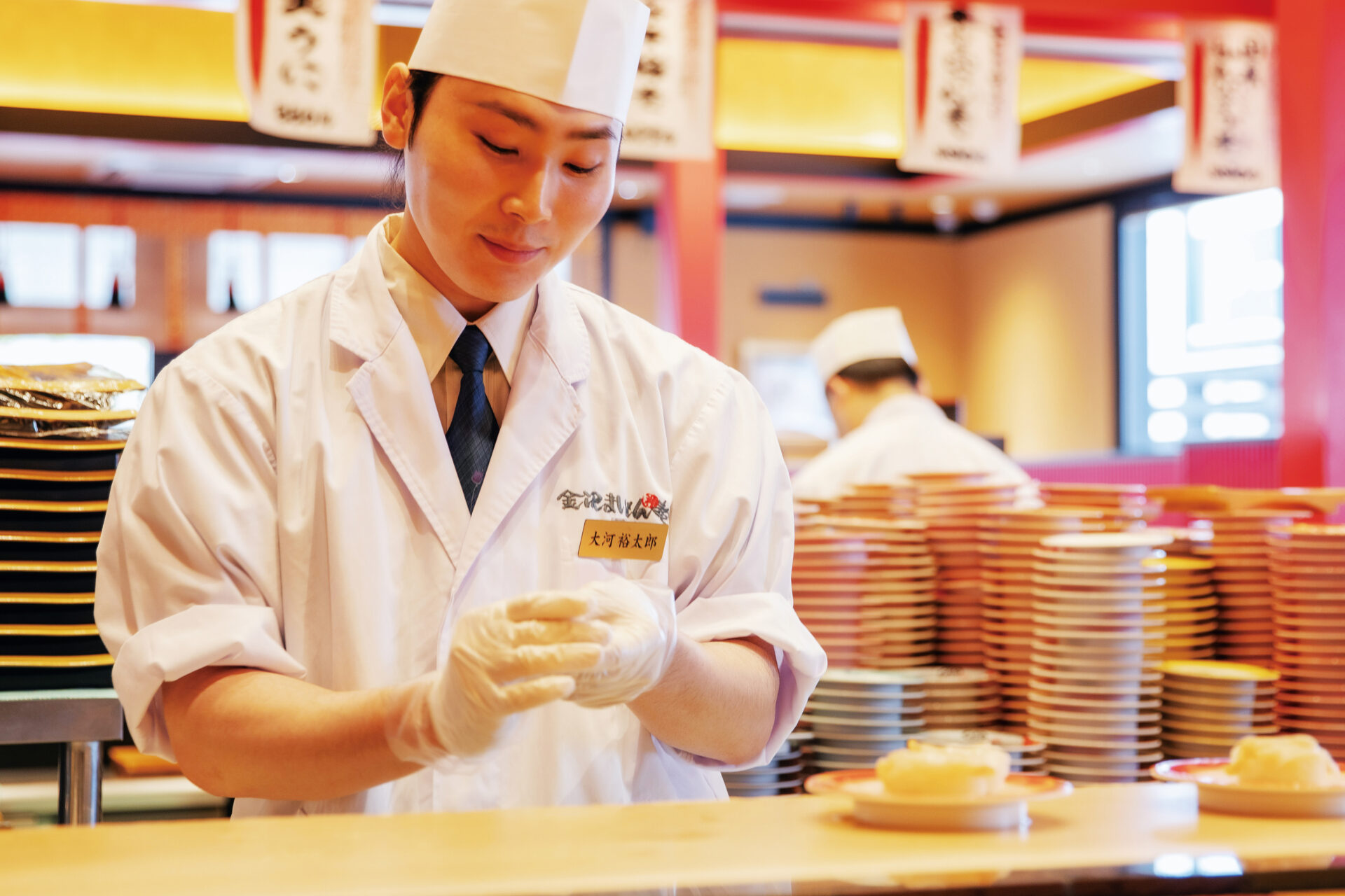 当社には人を育てる機会と自己成長できる環境があります。例えば寿司を握る技術や接客等の社内検定やコンテストです。その結果、昨年度は回転寿司協会主催の寿司職人のコンテストで全国優勝した人材も輩出しています。