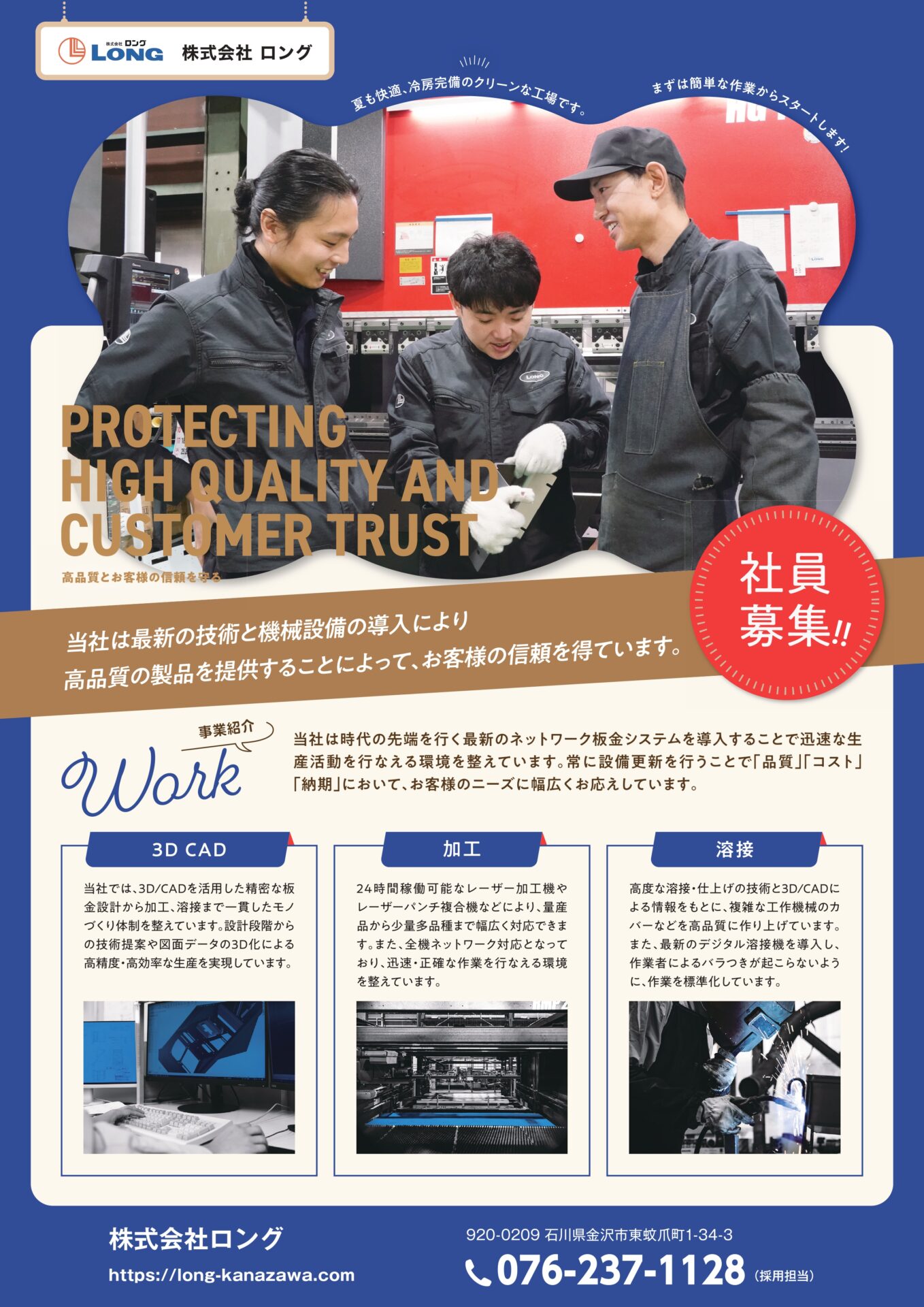 当社は最新の技術と機械設備の導入により高品質の製品を提供することによって、お客様の信頼を得ています。